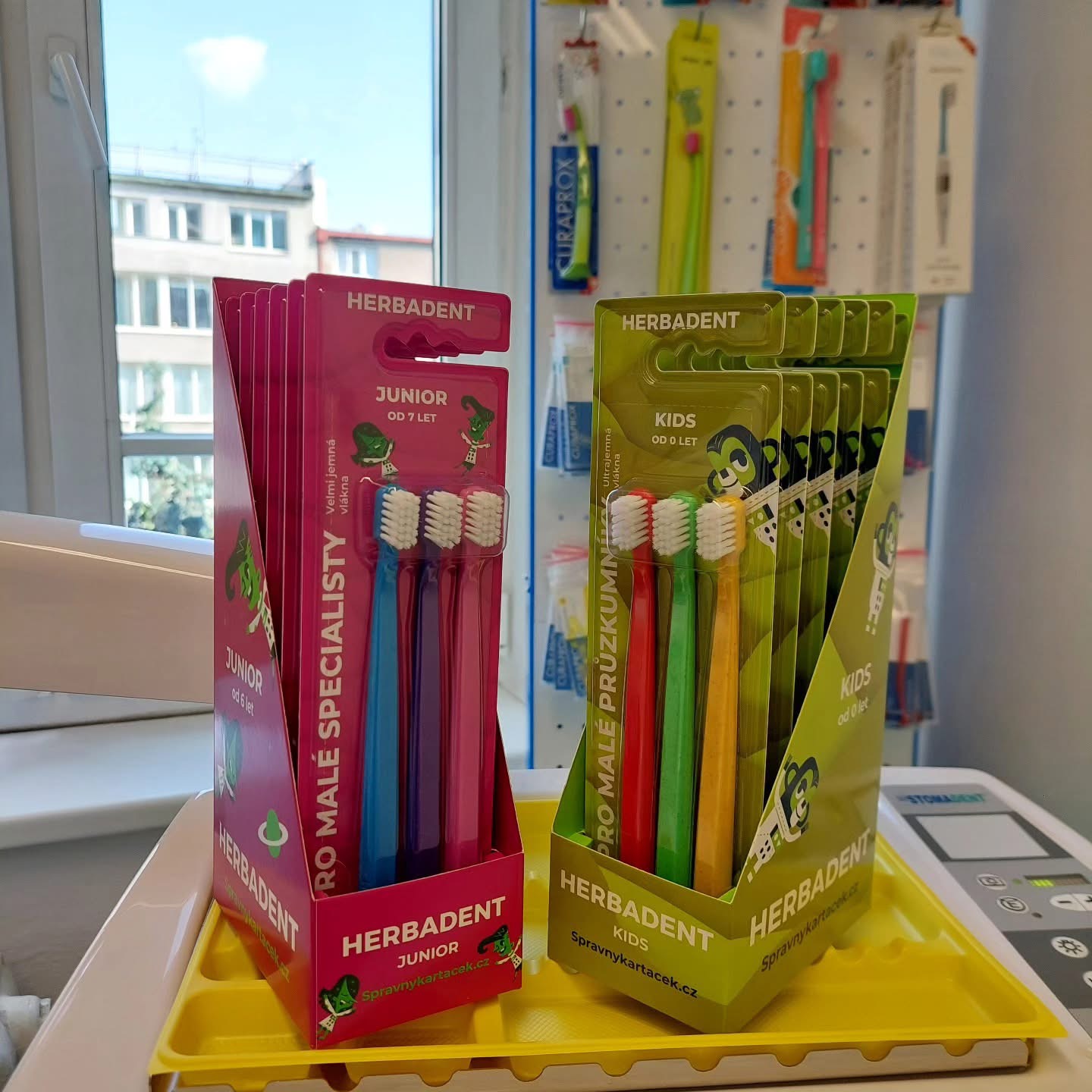 V ordinaci nabízíme také výběr kvalitních zubních kartáčků, mezizubních pomůcek nebo balíčků na míru – včetně sad pro pacienty s rovnátky.