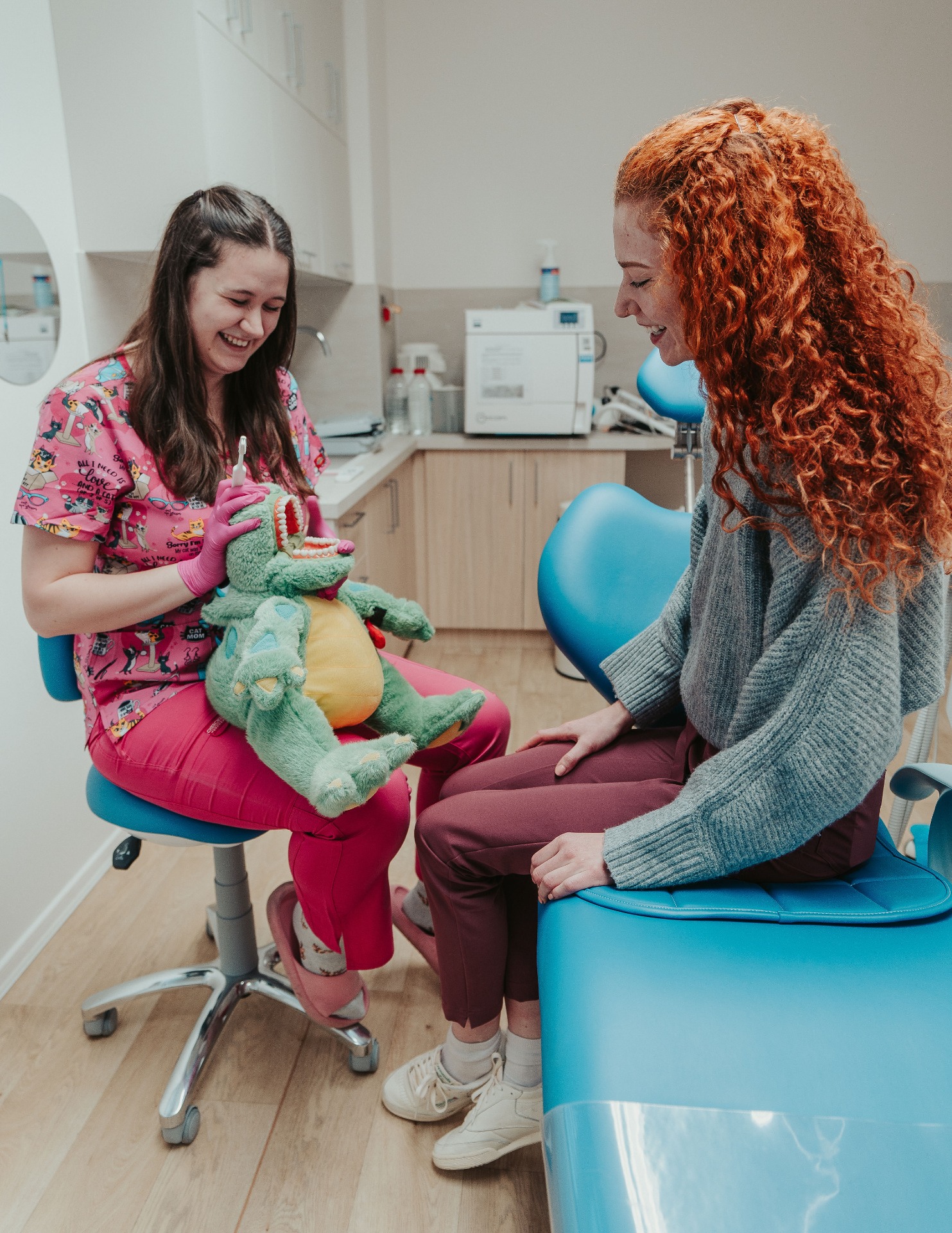 První návštěva u nás je především o poznání Vašich individuálních potřeb a nastavení péče, která bude dlouhodobě prospívat zdraví Vašich zubů i dásní. Chceme, aby pro Vás byla návštěva příjemná, srozumitelná a přínosná – bez stresu, v klidném prostředí a s dostatkem času na vše, co Vás zajímá. Na začátku společně projdeme vstupní anamnézu a Vaše dosavadní zkušenosti s péčí o chrup.